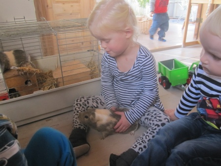 Inde i vores stuehus har vi marsvinen. De elsker gulerødder og æbler. Alle børn synes de er rigtige søde og kælne.
